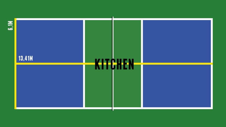 Pickleball is played on a 6,1m x 13,41m court, with a 91,4cm net and features a non-volley zone often referred to as “The Kitchen”. It is played with a paddle and a plastic ball with holes (similar to but not a wiffle ball) and combines some of the best aspects of multiple sports.